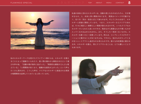 エネルギーを動かし、人生を変化させるエネルギーワークを提供している Flamingo special 鈴木美奈さんから、目に見えないエネルギーを、目に見える写真という形で“可視化したい”と、写真撮影をご依頼いただきました。